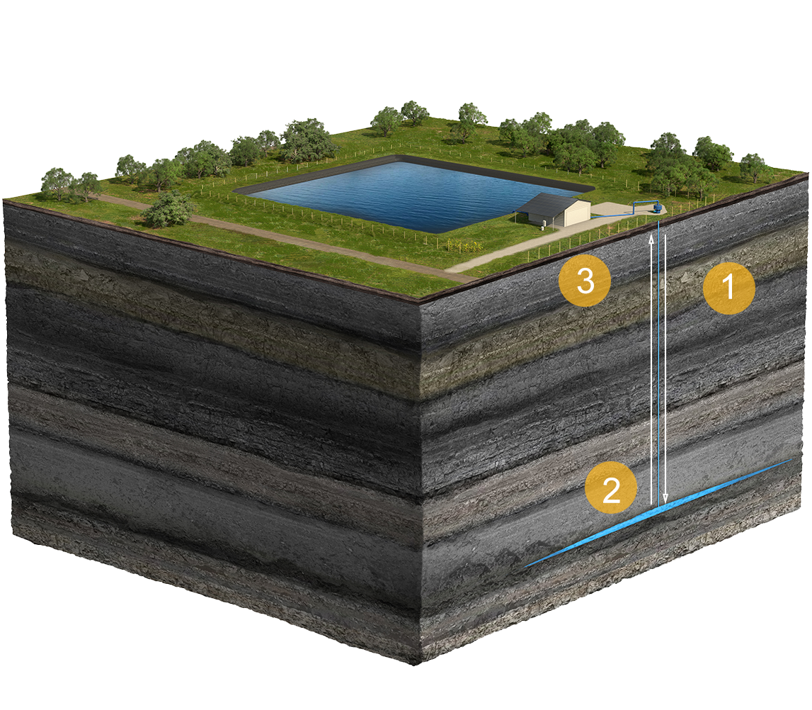 The technology is based on closed-loop water systems, designed to prevent evaporative loss and developed at dry oil and gas wells. The underground energy-storing rock bodies are non-hydrocarbon bearing and charged by pumping water under high pressure. When electricity is needed, the well is opened to let the pressurized water pass through a turbine to generate electricity, and return to the pond ready for the next cycle.
