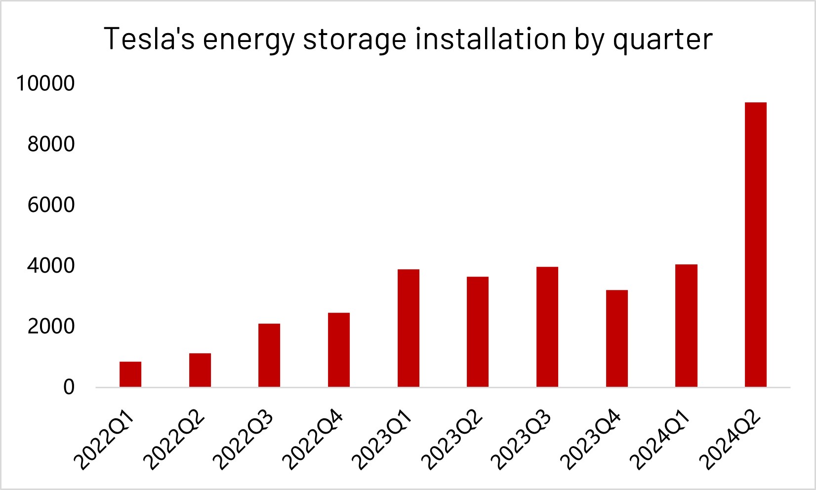 According to Tesla Energyās latest statistics, its energy storage installation has reached 9.4 GWh in the second quarter, a historic high. Combined with the 4.1 GWh installed in the first quarter, Tesla has accumulated 13.5 GWh of installed capacity in the first half of this year, up 178% YoY, a figure almost equal to the capacity installed annually in 2023.