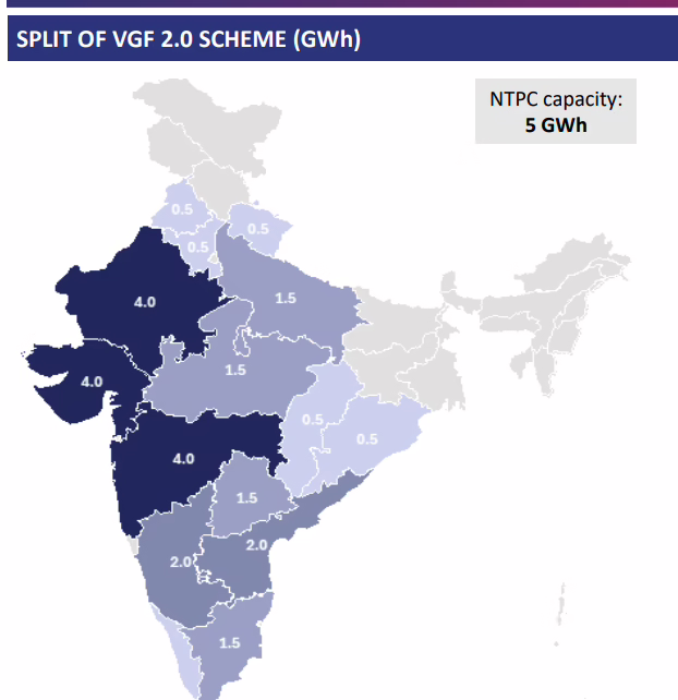 The scheme will extend financial support to 15 states and the National Thermal Power Company (NTPC). Of the total 30 GWh target, 25 GWh will be distributed among 15 states to meet their energy storage needs and 5 GWh will be allocated to the NTPC to optimize the use of existing thermal generation and transmission infrastructure, and to supply electricity during non-solar hours in a reliable and cost-effective manner.