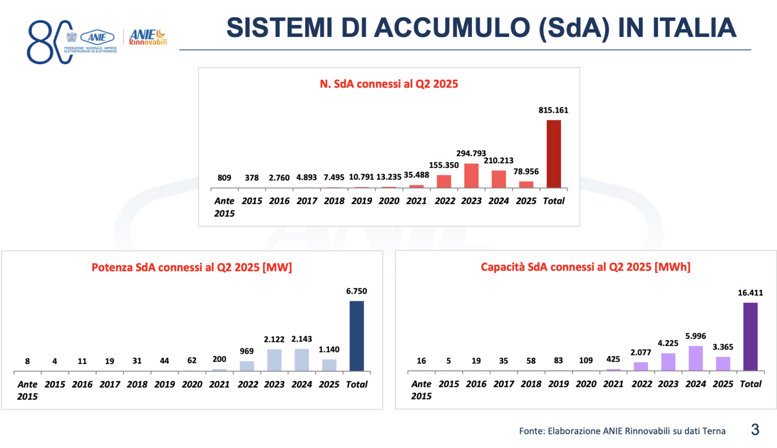 “The utility scale [sector] is growing exponentially, with a 600% increase in installations in the 1 MWh to 10 MWh segment and a 150% increase in the large utility scale (more than 10 MWh) segment,” said ANIE. “This growth comes from tools like fast reserve, [the] capacity market and, in the coming months, the new MACSE mechanism, through which Terna will acquire storage capacity to balance the grid.”