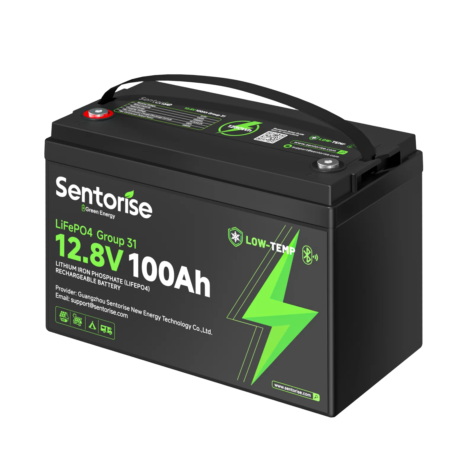 The Sentorise 12.8V 100Ah Group 31 LiFePO₄ battery uses automotive-grade A+ lithium iron phosphate (LiFePO₄) cells.