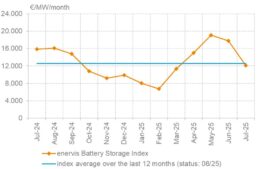 Energy economics consultancy enervis has been publishing a monthly “Battery Storage Index,” based on historical market data, since the first quarter of 2025. The index illustrates revenue opportunities for battery storage systems in Germany by accounting for participation in both the intraday and balancing power markets. It provides an overview of achievable revenues for each of the past 13 months.