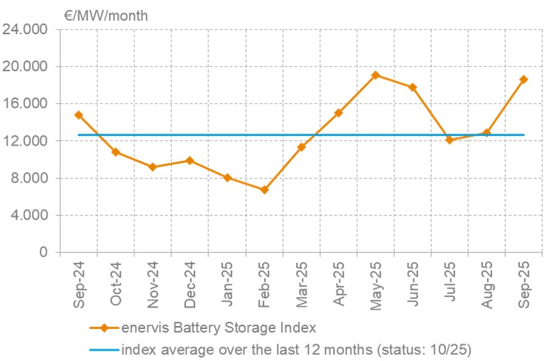 Enervis Battery Storage Index: Revenues climb sharply in September