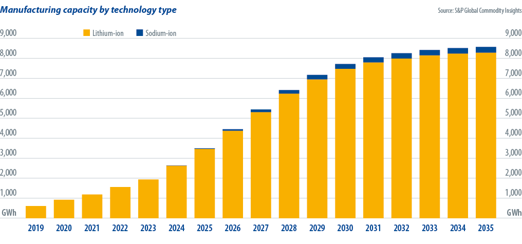 In addition to the physical safety component, Na-ion represents a strategic “supply chain safety” element. China dominates the entire supply chain of Li-ion batteries, except for raw materials, where it still relies heavily on imports from countries with lithium wealth, such as Australia, Chile and Argentina. Unlike lithium, sodium can be produced synthetically anywhere, eliminating risks associated with supply chain concentration and price volatility. Dominating the Na-ion technology can be strategic for cell manufacturers that want to hedge their exposure to future shocks in the Li-ion value chain.