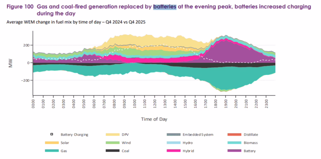 “The WEM also experienced battery discharge surpassing 1 GW of injection for the first time on 15 December 2025 in the 6.35pm interval. This record was exceeded on 23 December 2025 in the 6.30pm interval, which saw 1,050 MW of battery discharge.”