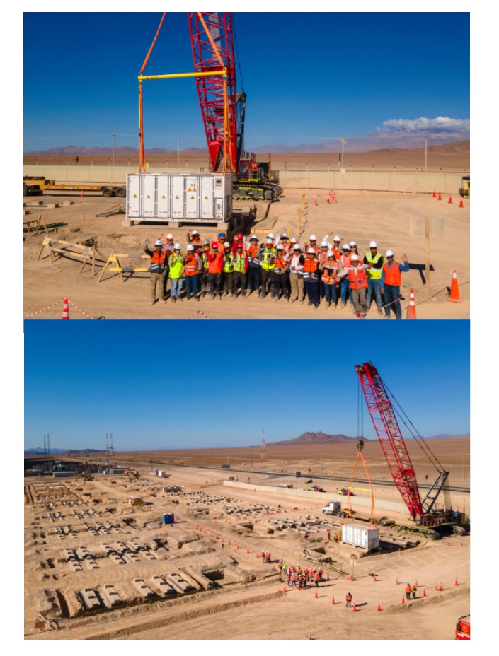 The batteries, supplied by e-Storage (a subsidiary of Canadian Solar), initially arrived at Puerto Angamos. They were then transported from the La Negra industrial sector in the Antofagasta Region to the project site in the commune of Diego de Almagro, Atacama Region.