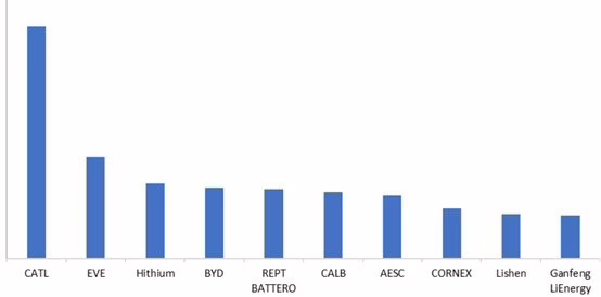 In the backup power battery segment—used primarily for telecom base stations and data centers—Shoto led the field, followed by Narada Power, Gotion High-Tech, Cospowers, and CALB. This category includes both lithium-ion and lead-acid battery technologies.